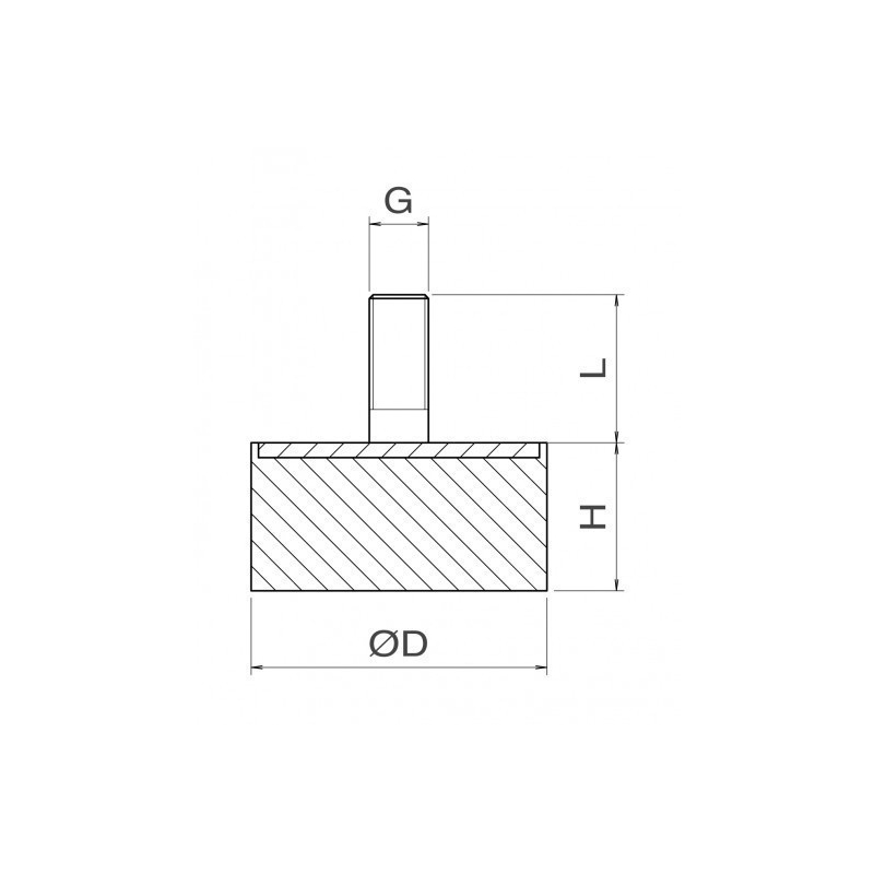 Durchmesser: 50 mmHöhe: 25 mmGewinde: M10Gewindelänge: 28 mm
