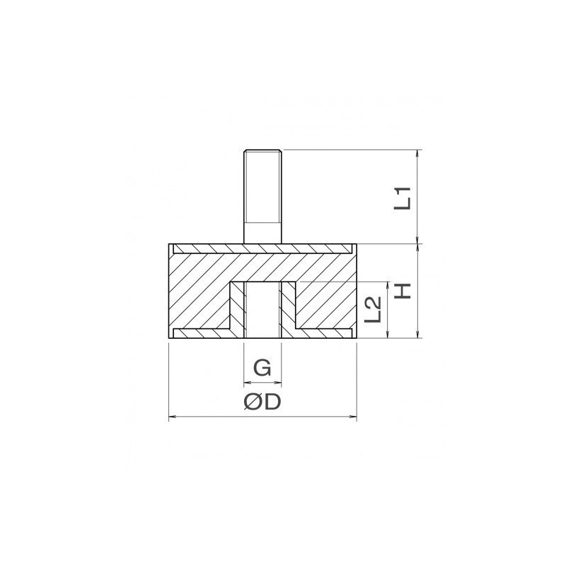Durchmesser: 50 mmHöhe: 50 mmGewinde: M10Gewindelänge 1: 28 mmGewindelänge 2: 10 mm